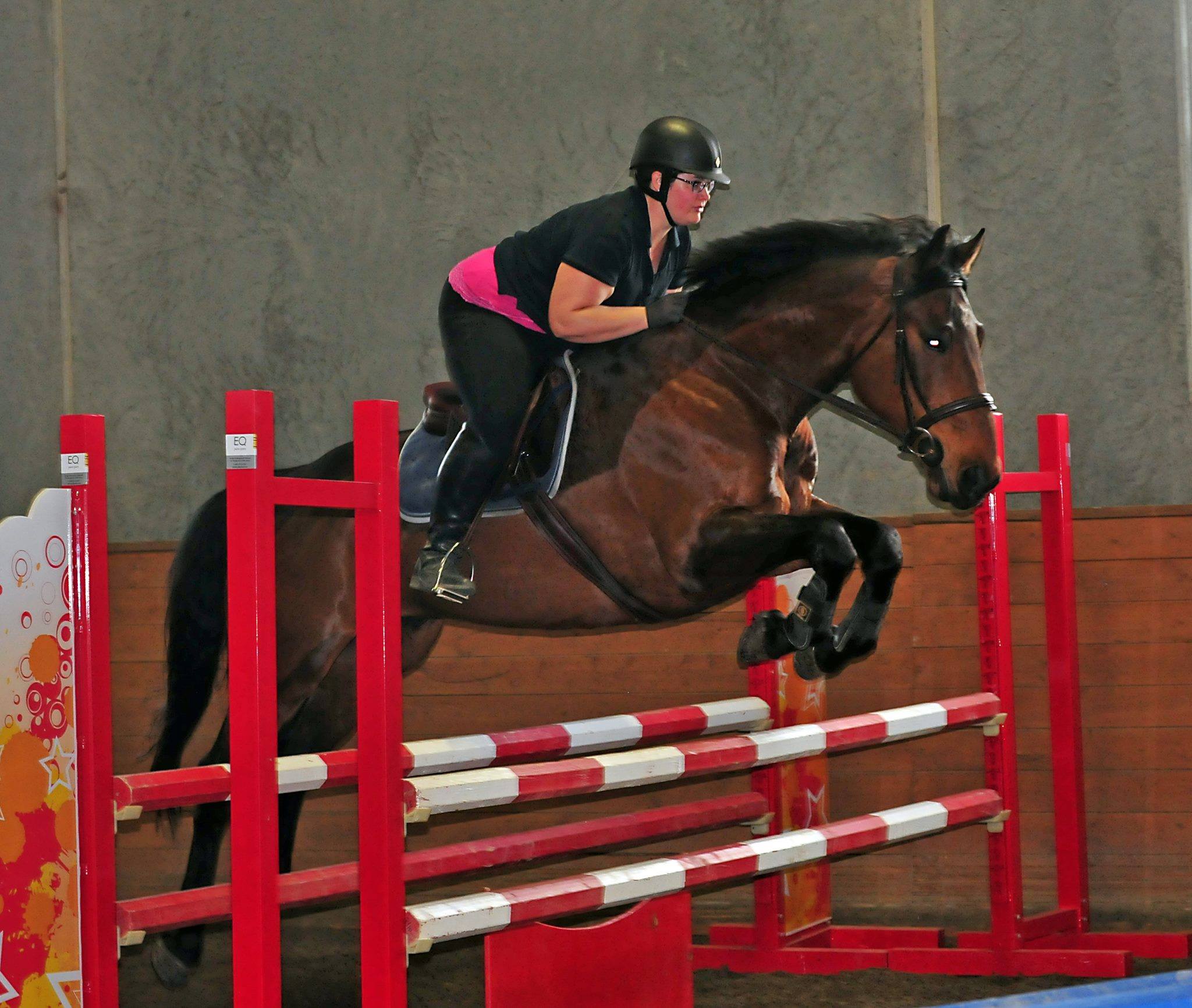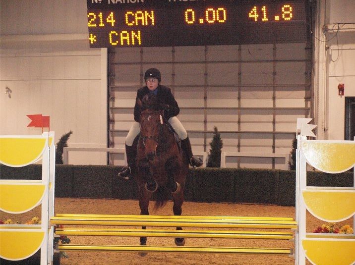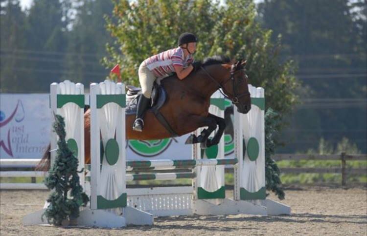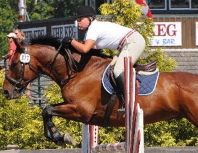 Whisper has taken his past two riders from the starter jumper division up to the .90m jumpers and has also done the Child/Adult hunters and had sucess in the Jr/Amateur hunter derbies as well. This big boy always goes to the jumps and is not spooky at all, he absolutely takes a joke and doesn't get offended. He jumps all natural fences including liver pools, devils dyke and table tops. He takes a good feel of the bit so his rider always feels confident that he is 'taking' them to the fence, his lead changes are good but not auto. He also has done some mini medals and his flatwork is very good with shoulder in/out, leg yield and counter canter. Whisper is ready to take his next rider to the ring and build their confidence just like he has done with our riders for the past six years.